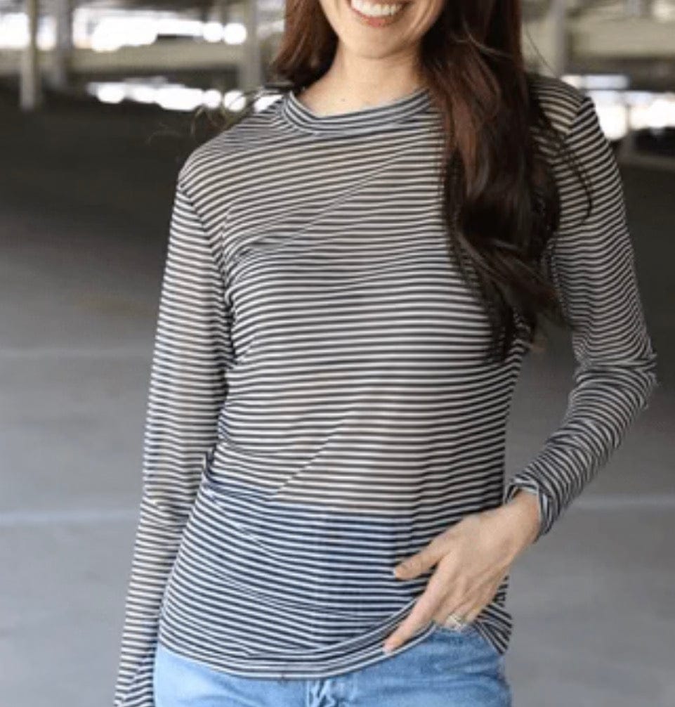 This Black Striped Mesh Top is perfect for layering or wearing on its own for an edgy, fashion-forward look. The breathable mesh fabric provides comfort and style, while the classic striped pattern adds a trendy, standout appeal. Whether you’re dressing it up or down, this stretchy top is ideal for creating versatile, eye-catching outfits. Pair it with jeans or a skirt for a modern, chic vibe.
