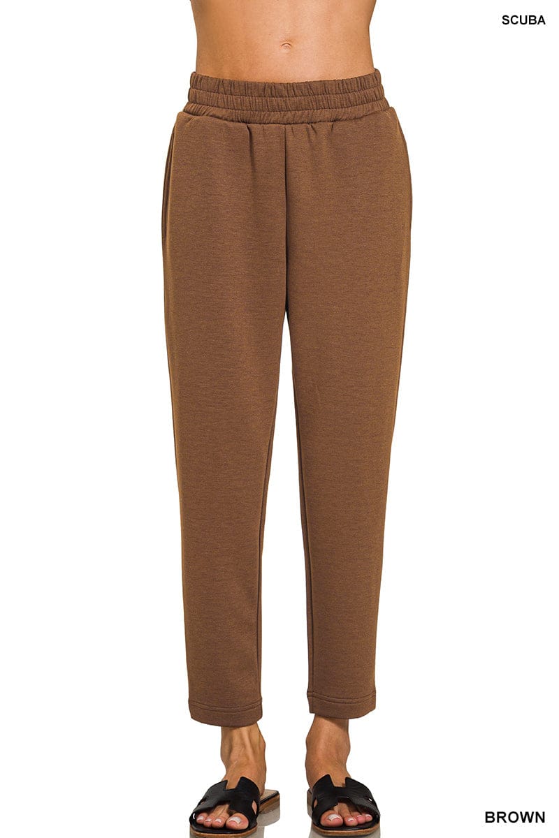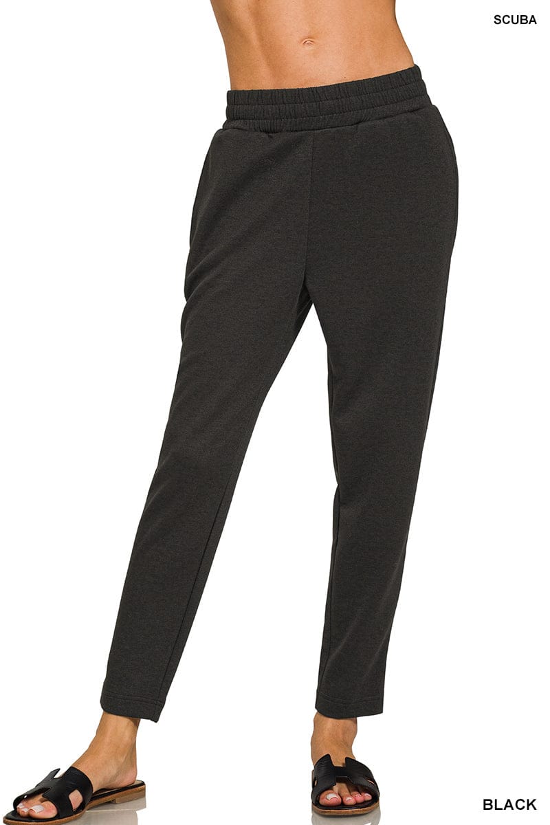 These Scuba Capri Sweatpants with Pocket are a must-have for your active wardrobe. The scuba material provides a flattering and comfortable fit. The capri length is perfect for warmer days or workouts. The convenient pocket adds functionality for storing small items. Stay stylish and comfortable in these versatile sweatpants.